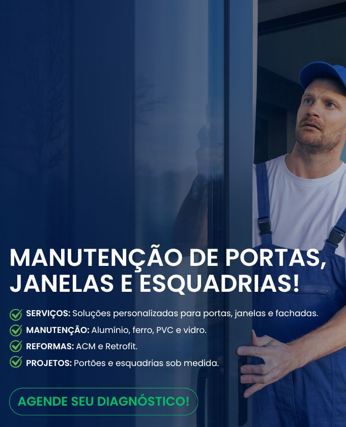 Manutenção de portas e janelas de ferro, alumínio, PVC e vidro temperado.